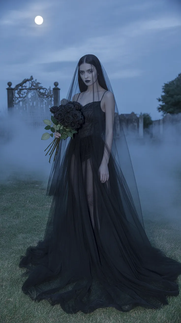 This gothic vampire bride look is stunning and perfect for Halloween. The black tulle and veil create a dramatic effect that captures the vampire lady aesthetic beautifully. Pair it with dark roses for a touch of elegance that makes this vampire Halloween costume truly unforgettable.