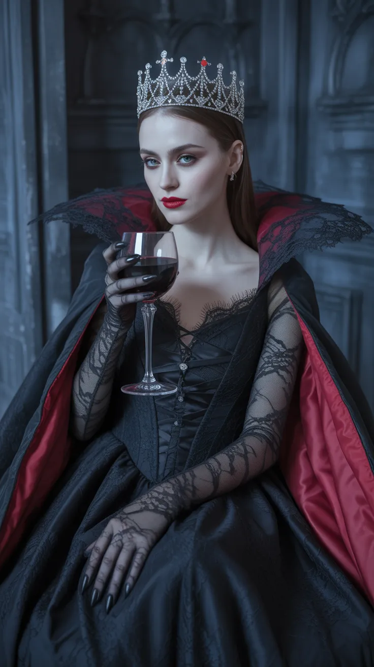 2. Gothic Vampire Queen With Rhinestone Crown And Lace Gloves
