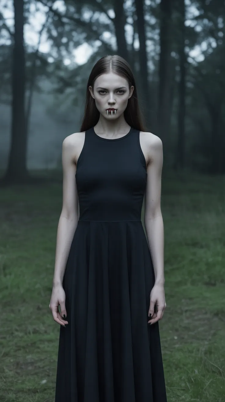 21. Minimalist Vampire In Black Maxi Dress And Fangs