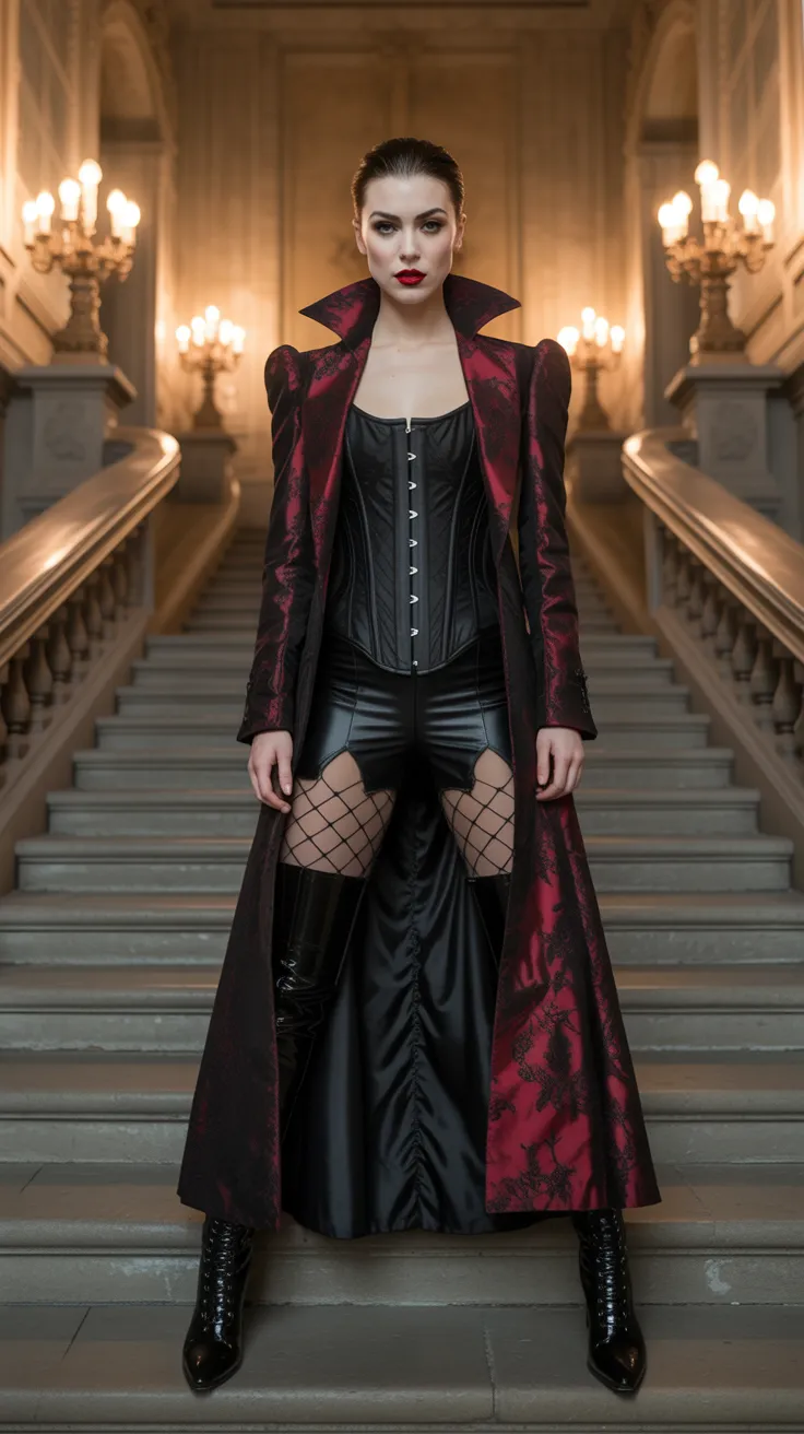 3. Dracula Costume Inspired Look With Corset And Brocade Jacket