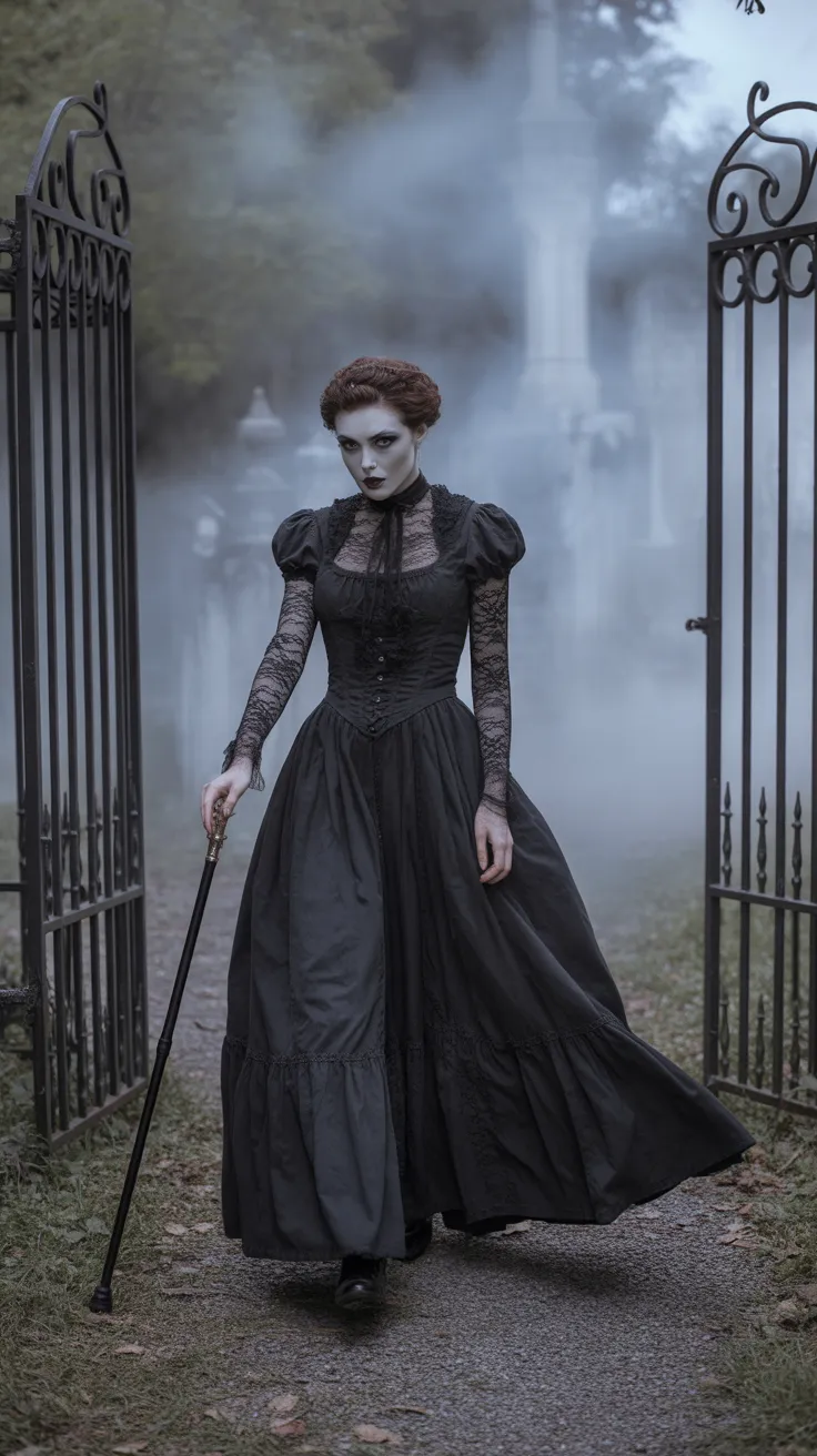 6. Victorian-Inspired Vampire With Bustle Skirt And Cane