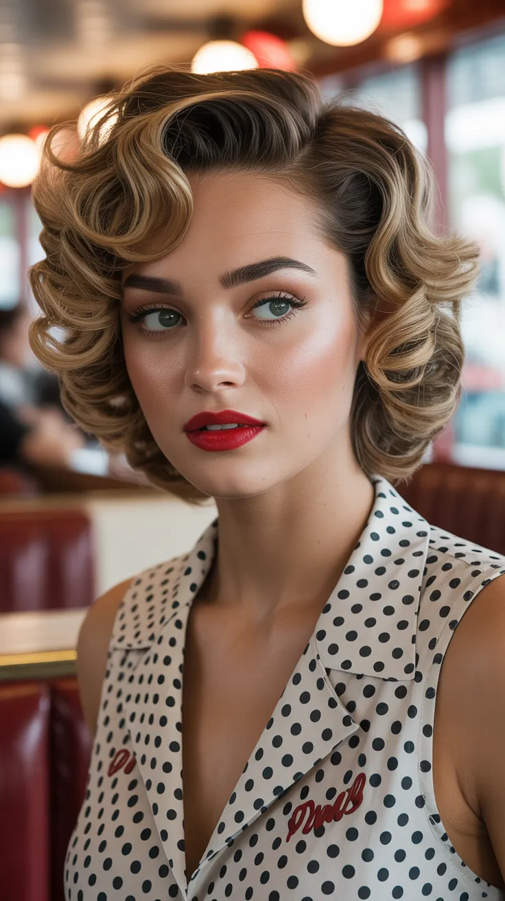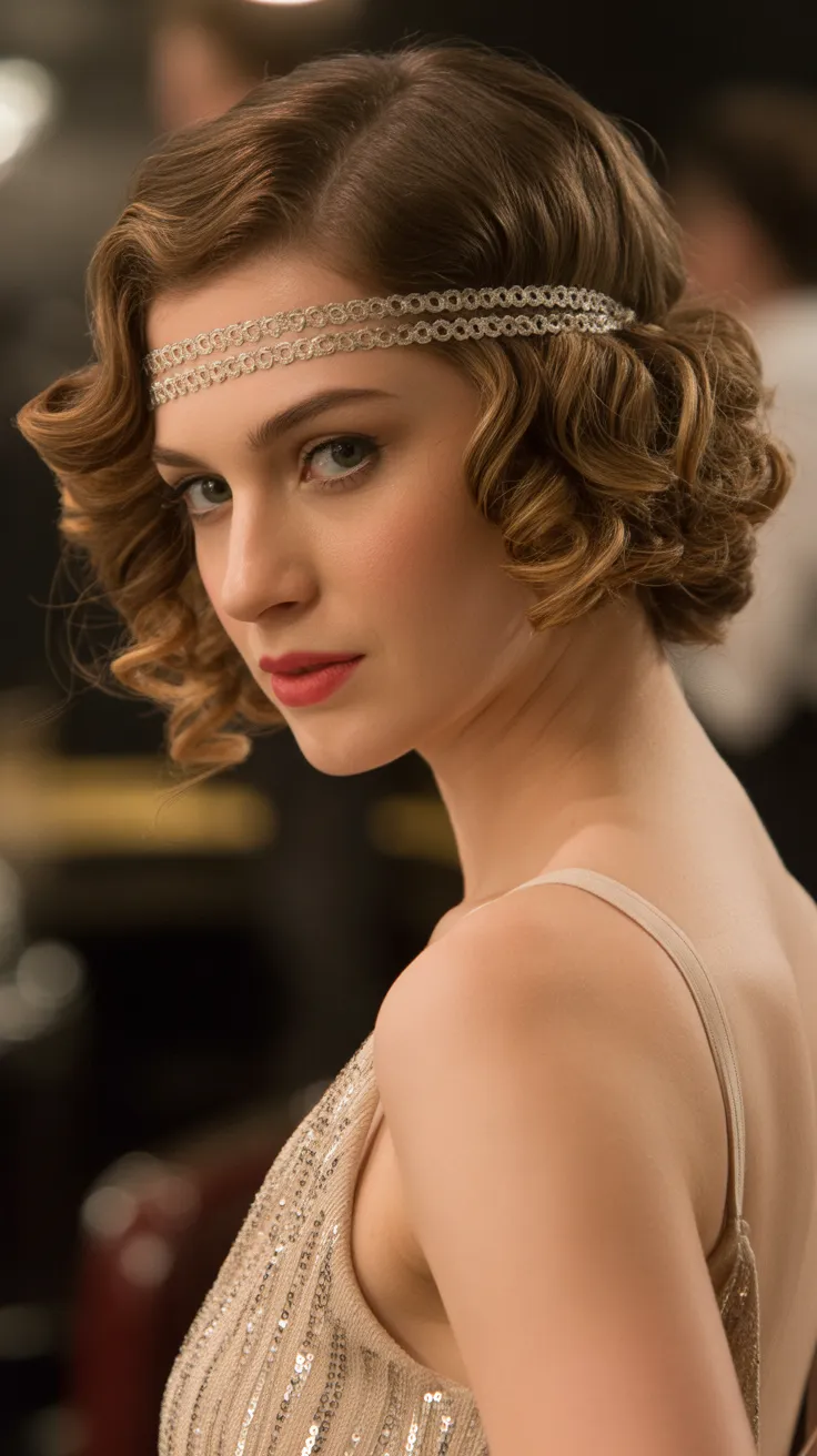 A headband adds a charming touch, enhancing the retro curls while keeping the hair neatly in place. This accessory not only complements the hairstyle but also nods to the fashion trends of the era. The combination of curls and headband creates a delightful balance of elegance and fun.