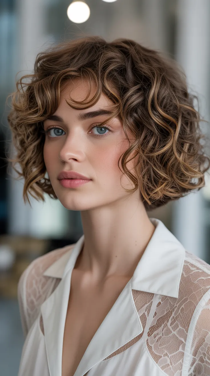 The chin-length curly bob is a timeless style that perfectly captures the essence of vintage curly hairstyles. This look features soft, bouncy curls that frame the face beautifully, giving it a playful yet sophisticated vibe.