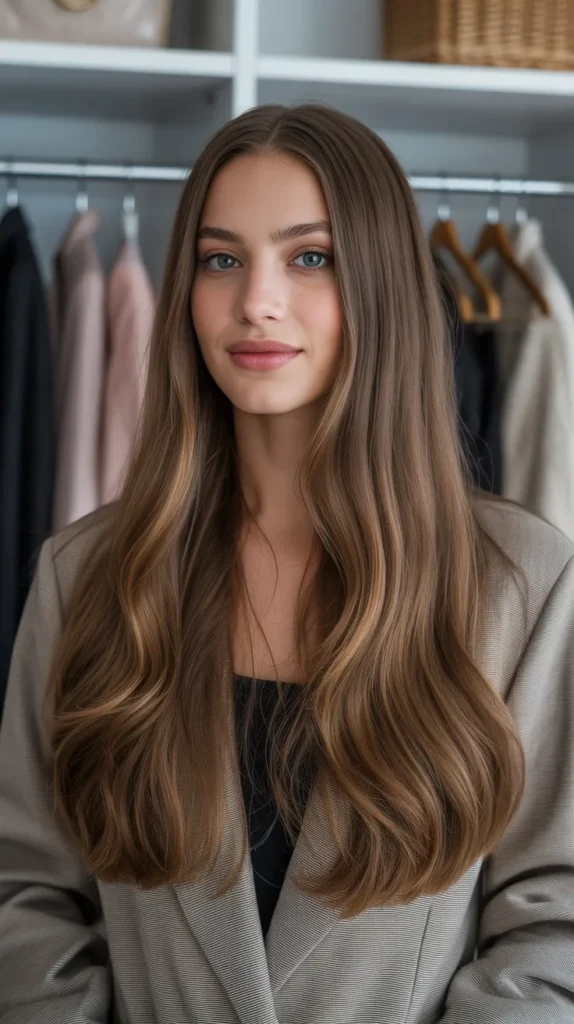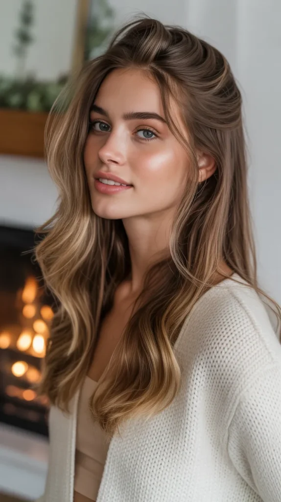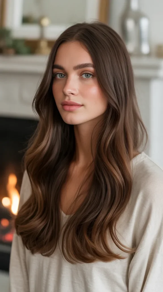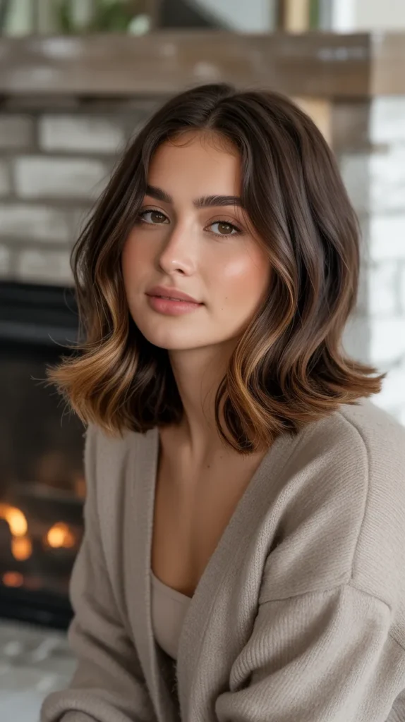Golden chestnut waves bring a radiant warmth that looks amazing in the autumn light. The golden undertones catch the sun beautifully, especially when styled in soft, flowing waves. This shade works perfectly for anyone with true brown hair who wants to brighten their look without going blonde. It’s one of those universally flattering shades of hair color that complements both cool and warm skin tones. Pair it with a cozy oversized sweater and you’ll have the ultimate autumn glow. 🍁