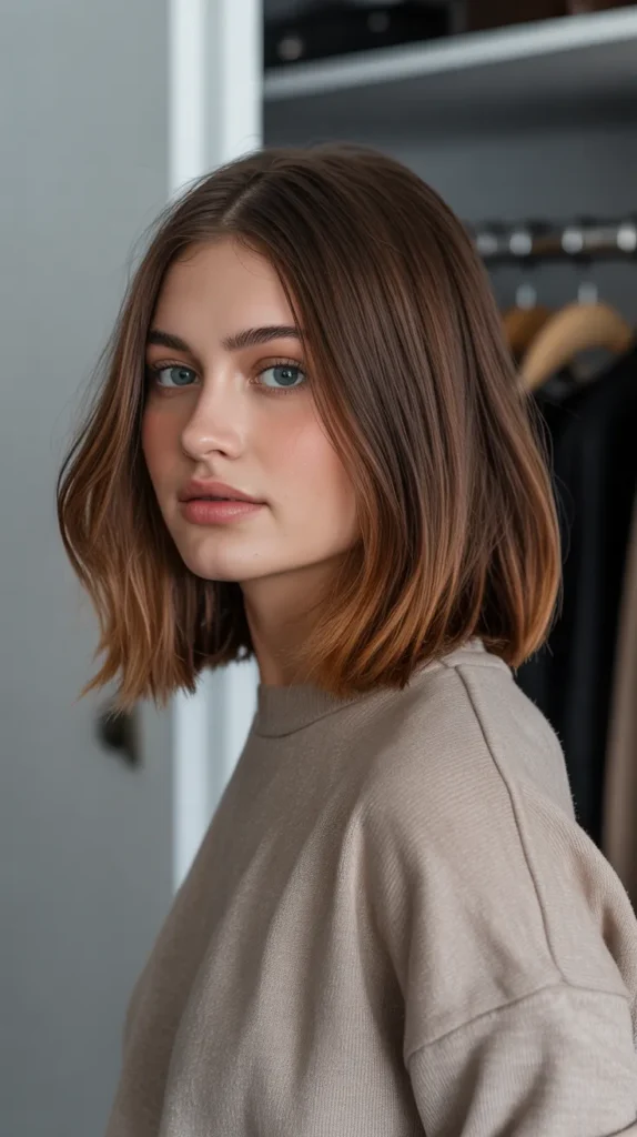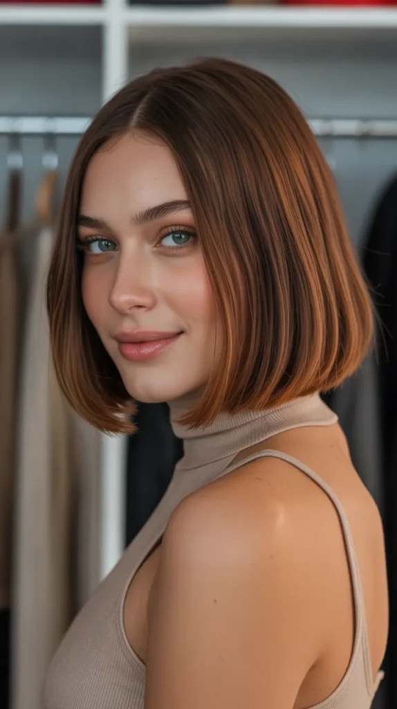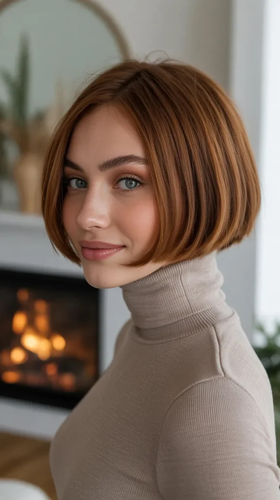 A sleek bob paired with amber undertones is the definition of chic autumn style. The amber hues add warmth to the true brown hair base, creating a glossy, polished finish. This color works wonders for short cuts because it emphasizes shine and structure. It’s subtle enough for work but still trendy for nights out. Pair it with statement earrings and you’ll look effortlessly stylish. 💎
