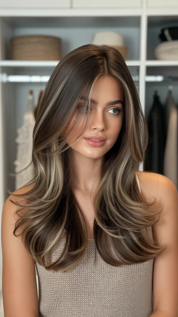 Caramel swirls add soft ribbons of warmth that flow through brunette layers. The highlights look natural and subtle but still give a noticeable glow. This style is especially flattering on long cuts where the swirls can catch the light. It’s a versatile look that transitions effortlessly from day to night. For anyone who wants shades of hair color that feel chic but easygoing, this one’s a must. ✨