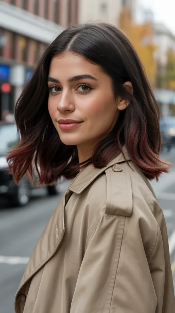 Mahogany tones add richness and depth to any brunette base. The warm red undertones glow beautifully under autumn light, making hair look vibrant and glossy. It’s bold enough to make a statement but still completely wearable. This shade is perfect if you want to experiment with red hues without going all-in. A cozy, dramatic twist for fall hair. 🍷