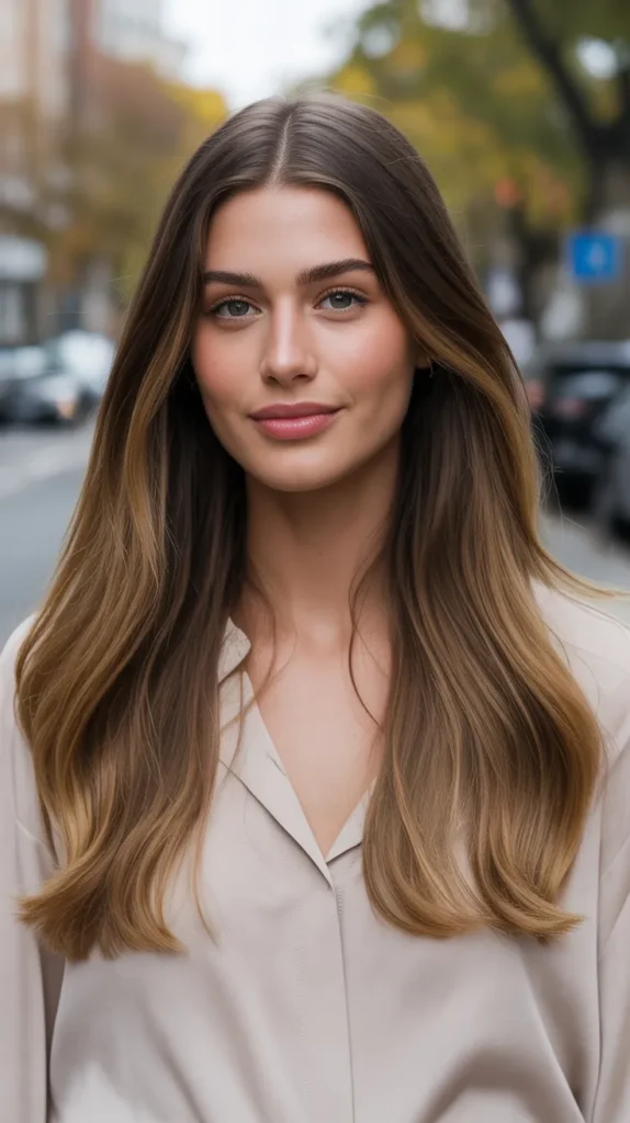 Chestnut ombre adds dimension and depth to brunette hair with a seamless fade. The chestnut roots transition into warm brown ends for a soft, wearable autumn look. It’s flattering on medium to long lengths and works beautifully in both sleek and wavy styles. The best part? It grows out naturally, so upkeep is minimal. A chic twist on the classic true brown hair look. 🌰