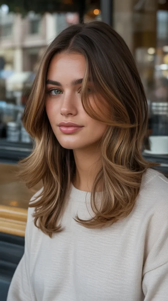 Honey brown balayage is all about that glossy, glowing finish. The golden honey tones melt into brunette hair, adding brightness and dimension. This look is especially flattering on long layers where the balayage can flow naturally. It’s low-maintenance too, since the soft grow-out blends effortlessly. If you’re ready for a fall hair refresh that still feels subtle, this one’s for you. 🌟