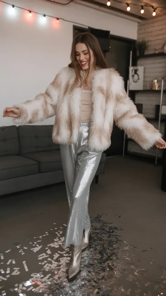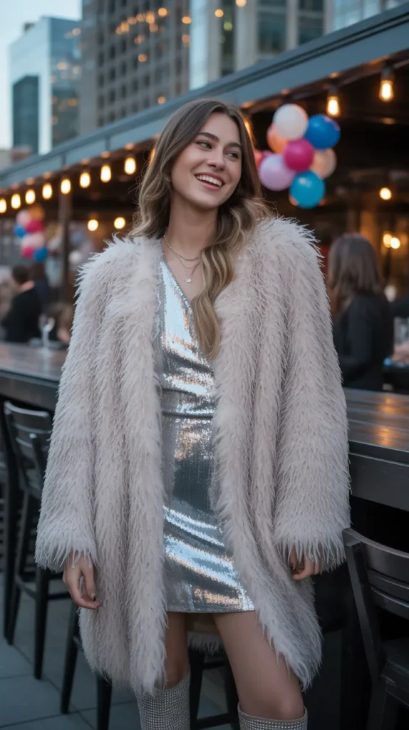 Rock a faux fur jacket with sequin pants and heeled booties for that extra glam punch. Youโll sparkle, stay warm, and radiate โbirthday starโ confidence all night long.