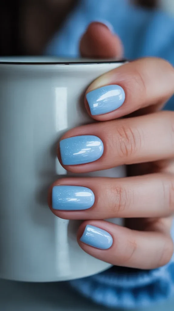 ❄️ Try layered shimmer: Apply a fine glitter topcoat over solid color for luxe winter gel nails ideas.