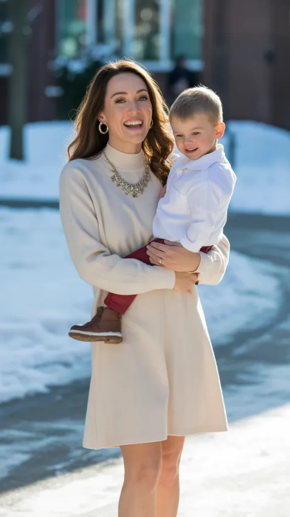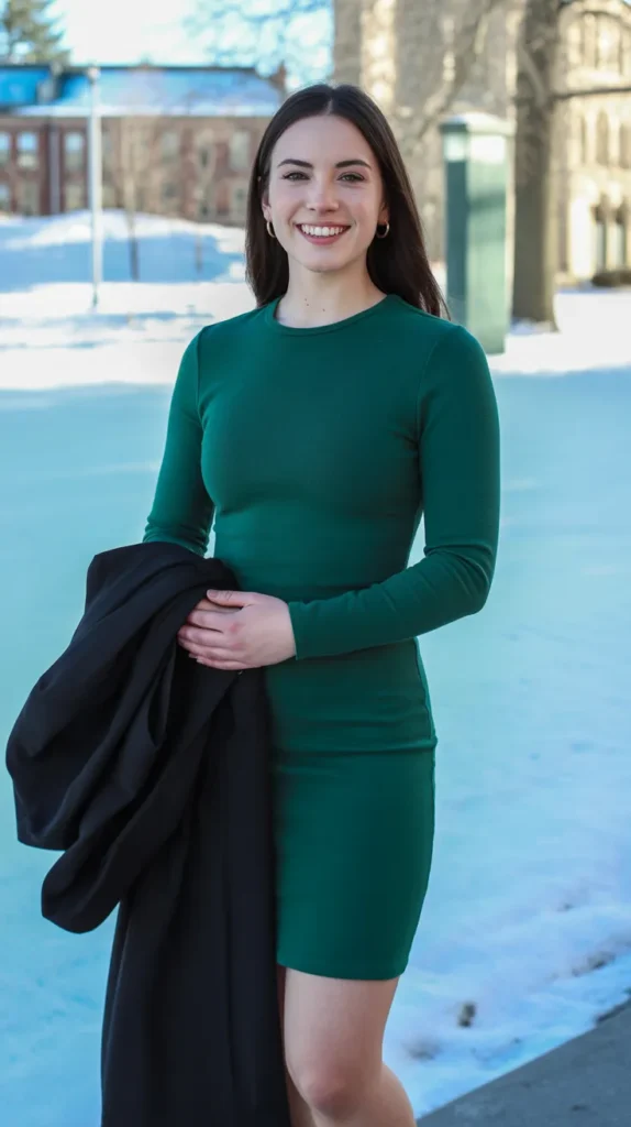Cozy meets chic with this soft knit option that feels elegant without being overly formal. Add a leather belt and ankle boots for stylish grad outfits that keep you warm during winter celebrations while looking naturally refined.