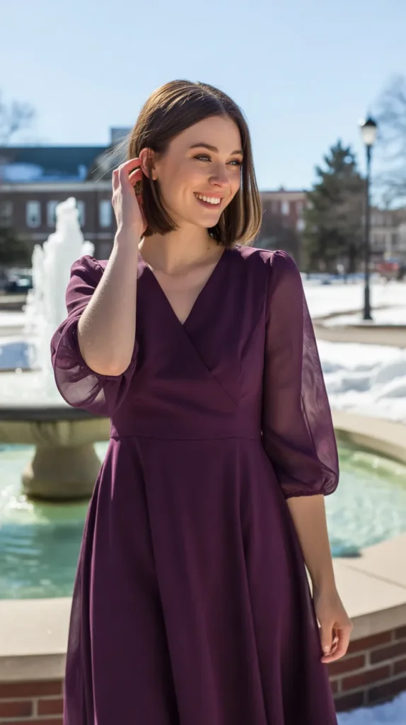 15. Plum Chiffon Dress with Sheer Sleeves