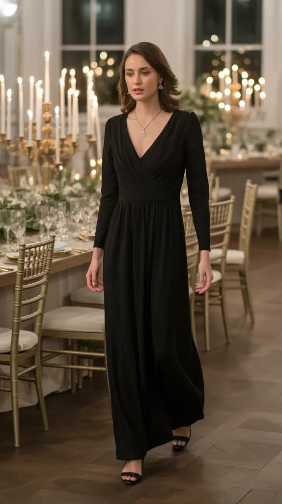 16. Black Long-Sleeve Maxi with Sparkle Detail