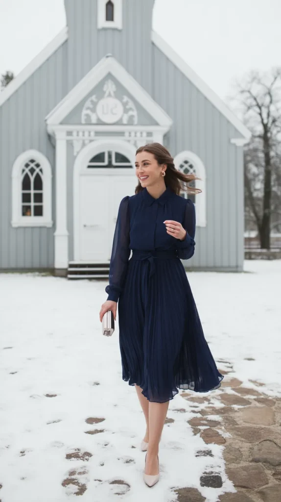 π Choose Smart Footwear: Opt for heeled boots or closed-toe pumps chic, comfortable, and perfect for cold-weather ceremonies.