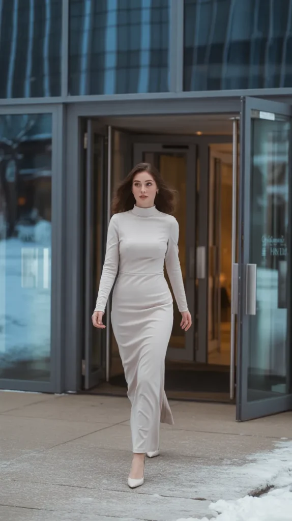 8. Long-Sleeve Bodycon Dress with High Neckline