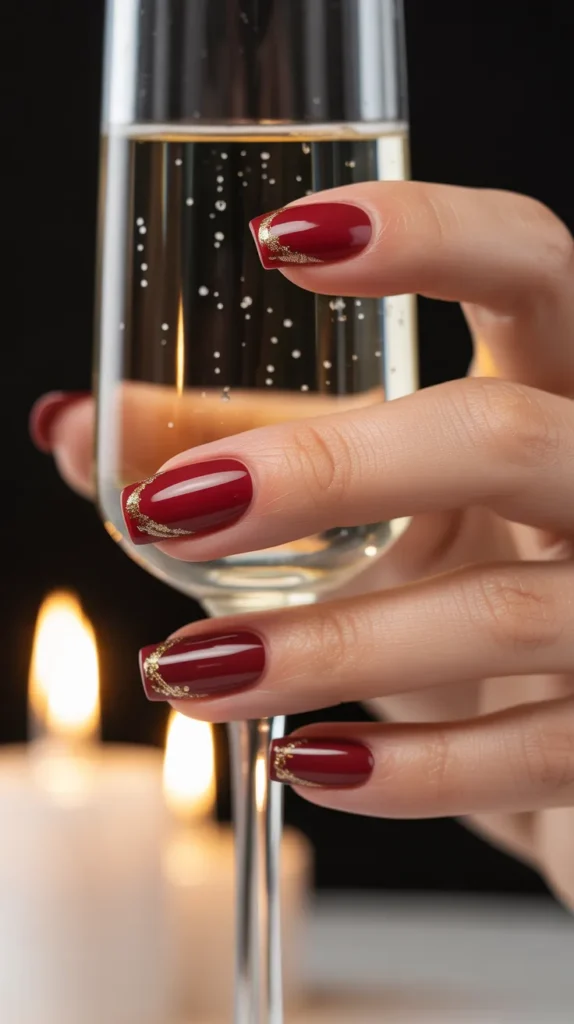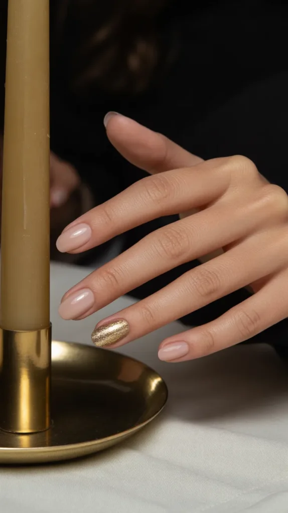 A single gold glitter accent goes a long way in adding subtle sparkle. This design blends refinement with a hint of fun, giving your classy nails a radiant holiday glow. β¨